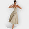 Свежест и елегантност, тази рокля съчетава комфорт и стил по естествен начин. Леката силуета придава движение и грация, правейки я идеална за светли дни и релаксиращи вечери през лятото.
