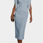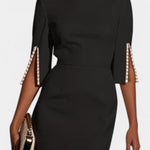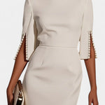 Весна Миди Рокля с Перлени Детайли и Кръгло Деколте