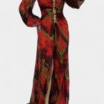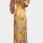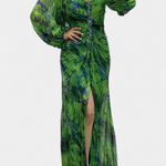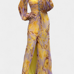 Леона Макси Рокля с Плисиране, Дълги Ръкави и Вибрантни Узорци