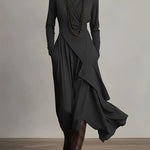 Макси роклята Марилин™ съчетава плавна лекота с стилна изтънченост. Дългите ръкави и меко падащият силует се движат хармонично с теб, докато нежният, висок деколте и асиметрично наслоените части създават елегантна, удължаваща линия.
