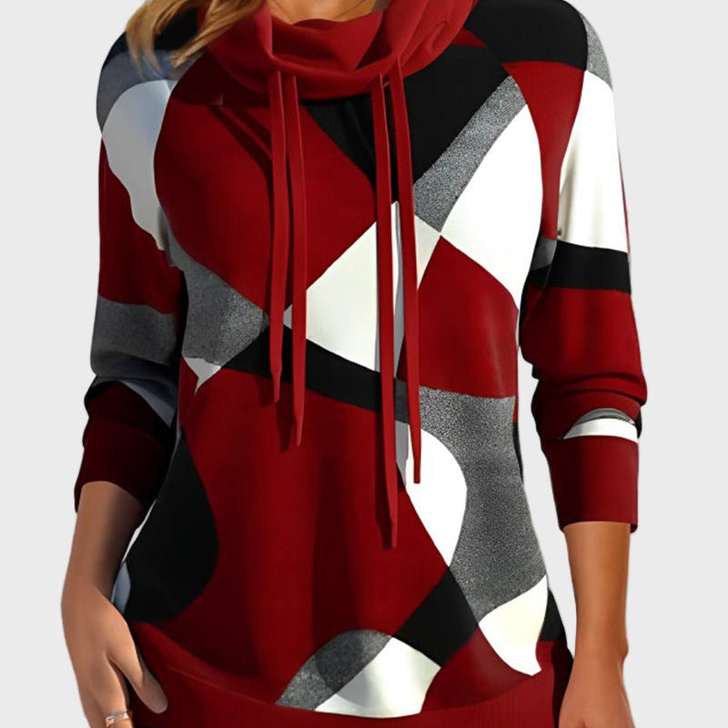 Плетена блуза с артистичен дизайн и качулка