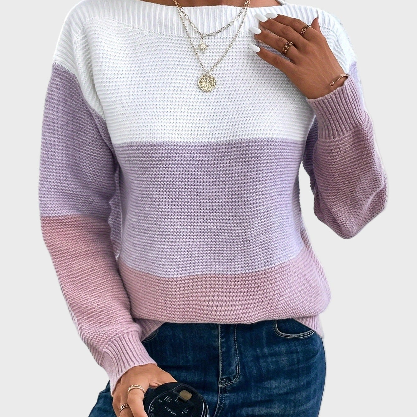 Изабел - Елегантен дамски пуловер с кръгло деколте
