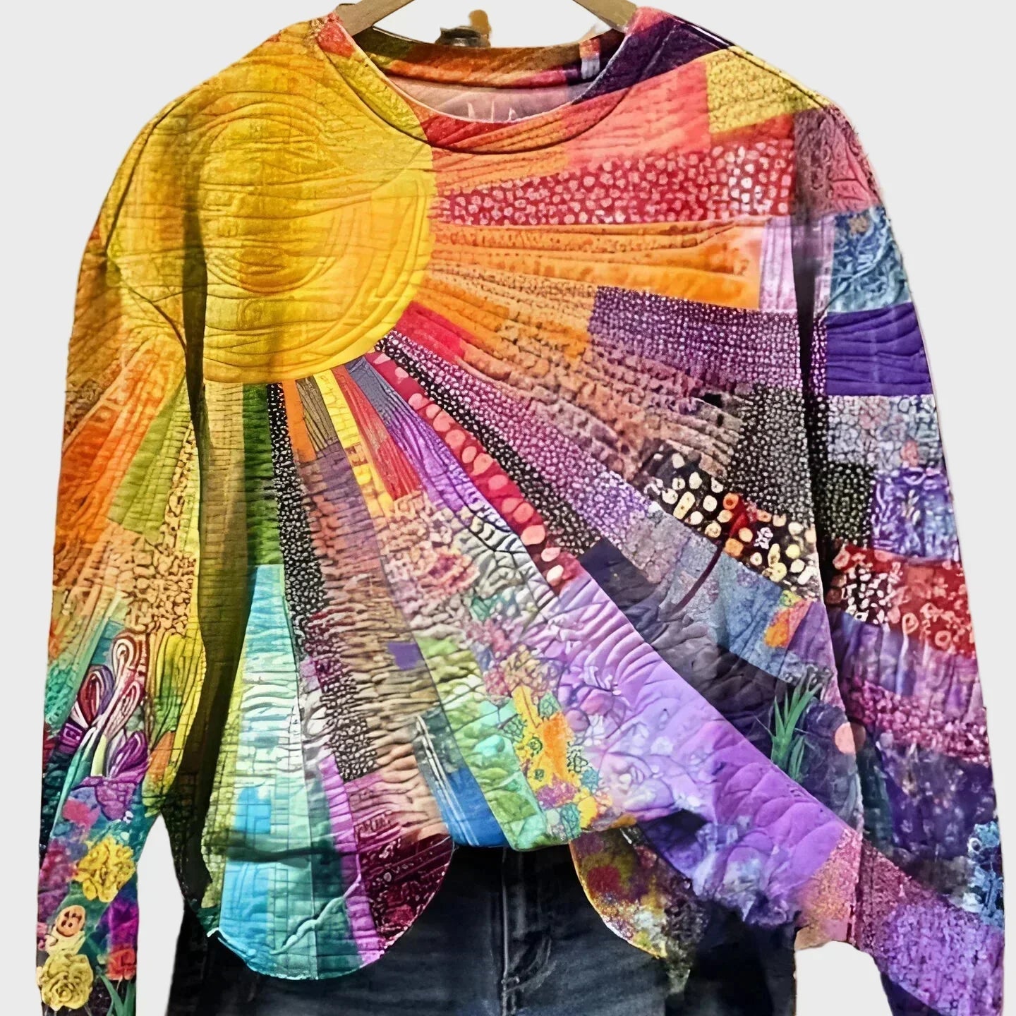 Плетена тениска с мотив на слънчеви лъчи