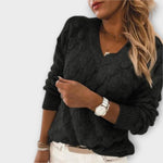 Пуловер Ноемие за жени с V-изрез въплъщава безгрижна елегантност и извечен комфорт. С ласкав V-изрез и небрежен крой, този пуловер предлага перфектна комбинация от стил и удобство. Независимо дали е за ежедневие, офис или неформални излизания през уикенда – Ноемие винаги е правилният избор.