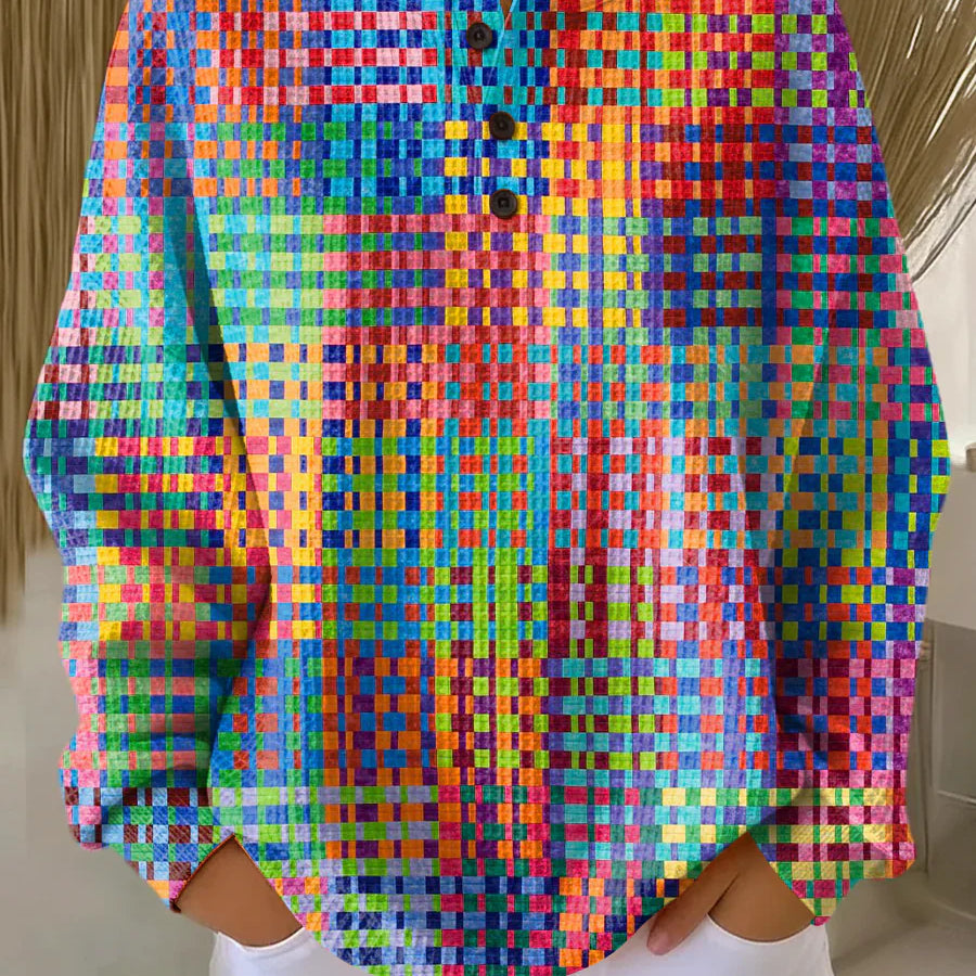 Роза | Суитър с цветен каре дизайн