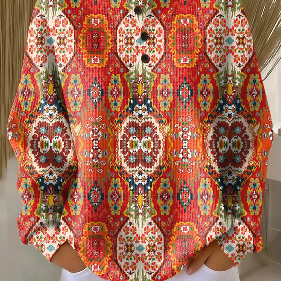 Елина | Пуловер с цветен етнически флорален принт