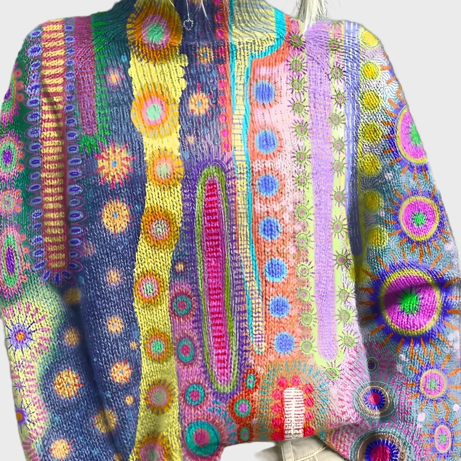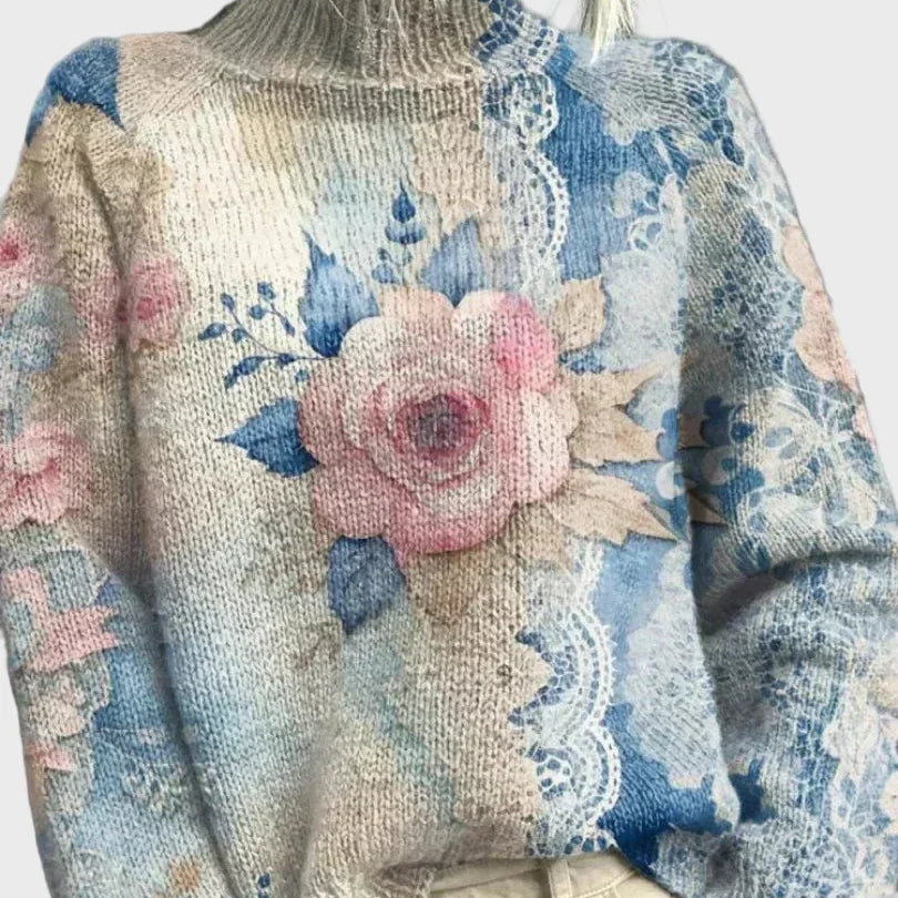 Плетен Пуловер с Висок Вратник и Специален Узор