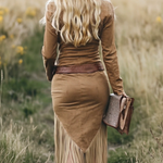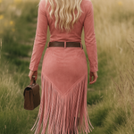 Роклята Valencia отдава почит на очарованието на уестърн стила с женствена и силна силуетна линия. Изработена от мек синтетичен велур, тя съчетава топлата текстура на американския Югозапад със съвременен дизайн, който подчертава фигурата.