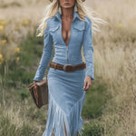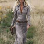 💡 Стилистичен съвет: Комбинирайте я с високи ботуши и широк колан, за да подчертаете уестърн визията.