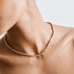 Добавете щипка лукс с колието Ривиер, покрито с 14k злато. Това изключително изделие разполага с непрекъсната линия от блестящи камъни, създавайки зашеметяващ и елегантен ефект. Перфектно за всякакъв повод, то предлага класически и шикозен акцент, който да повиши вашия стил.