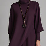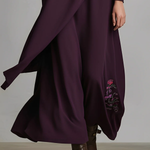 Melina е модел, който излъчва сила и елегантност. Високата яка придава отличителен и изискан характер, а фината бродерия и асиметричните гънки добавят текстура и движение. Наситеният лилав нюанс подсилва модерното и изтънчено излъчване.